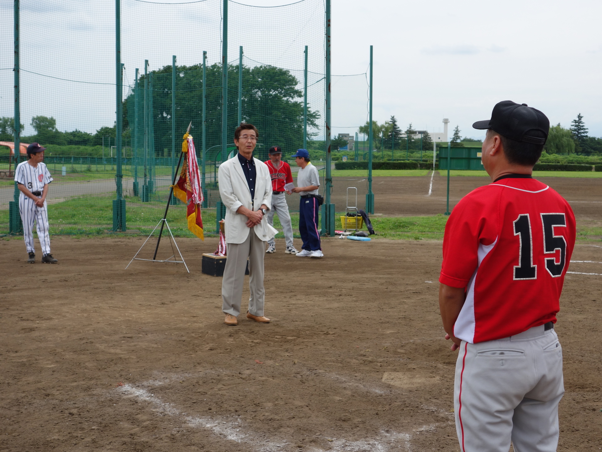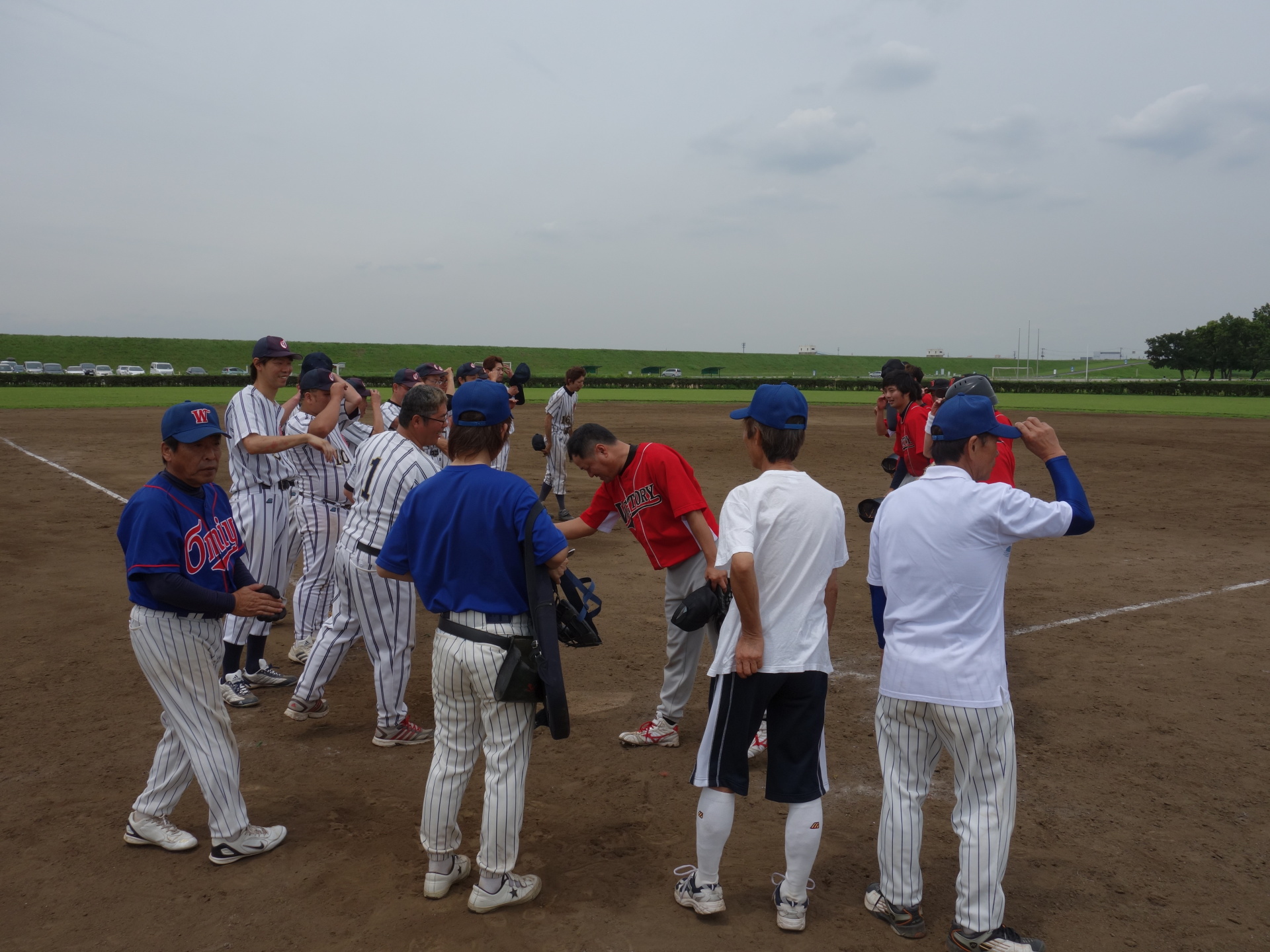 8月26日、荒川総合運動公園野球場にて、 第51回埼玉県理容生活衛生同業組合 野球大会の開会式が行われました。 大会制覇に向けて、与野VICTORY選手一同 頑張りますので、応援の程宜しくお願い致します! |