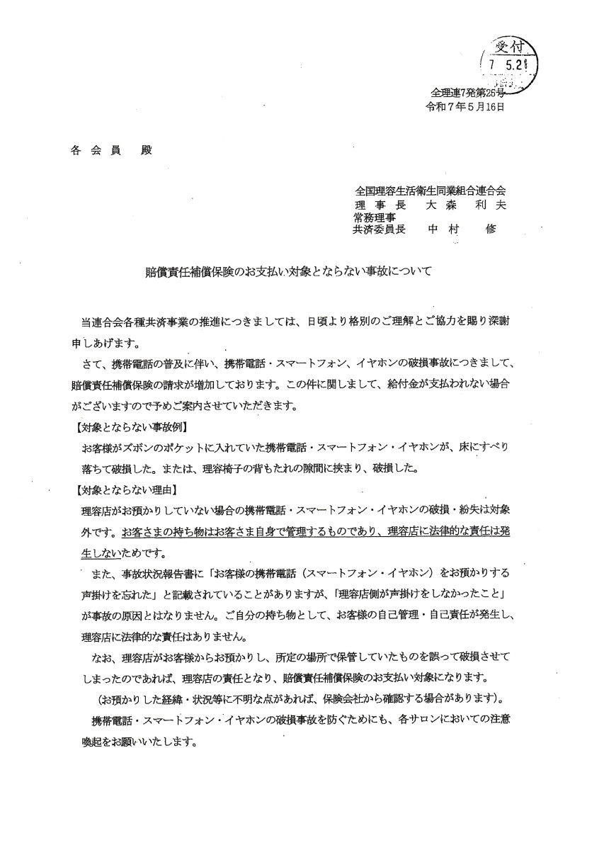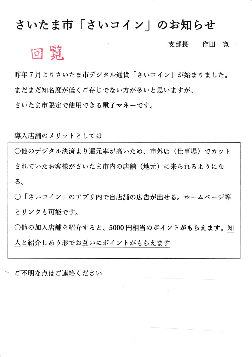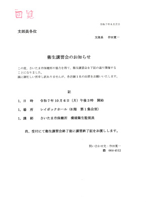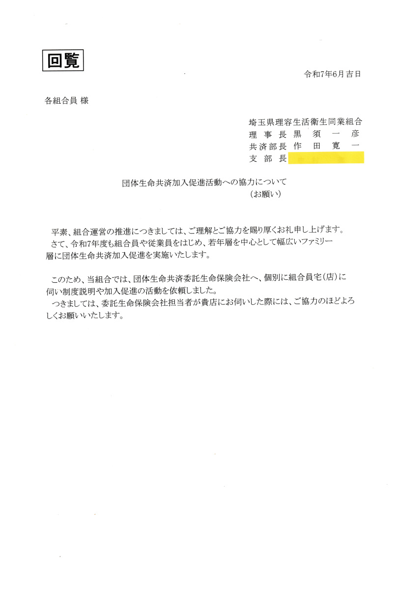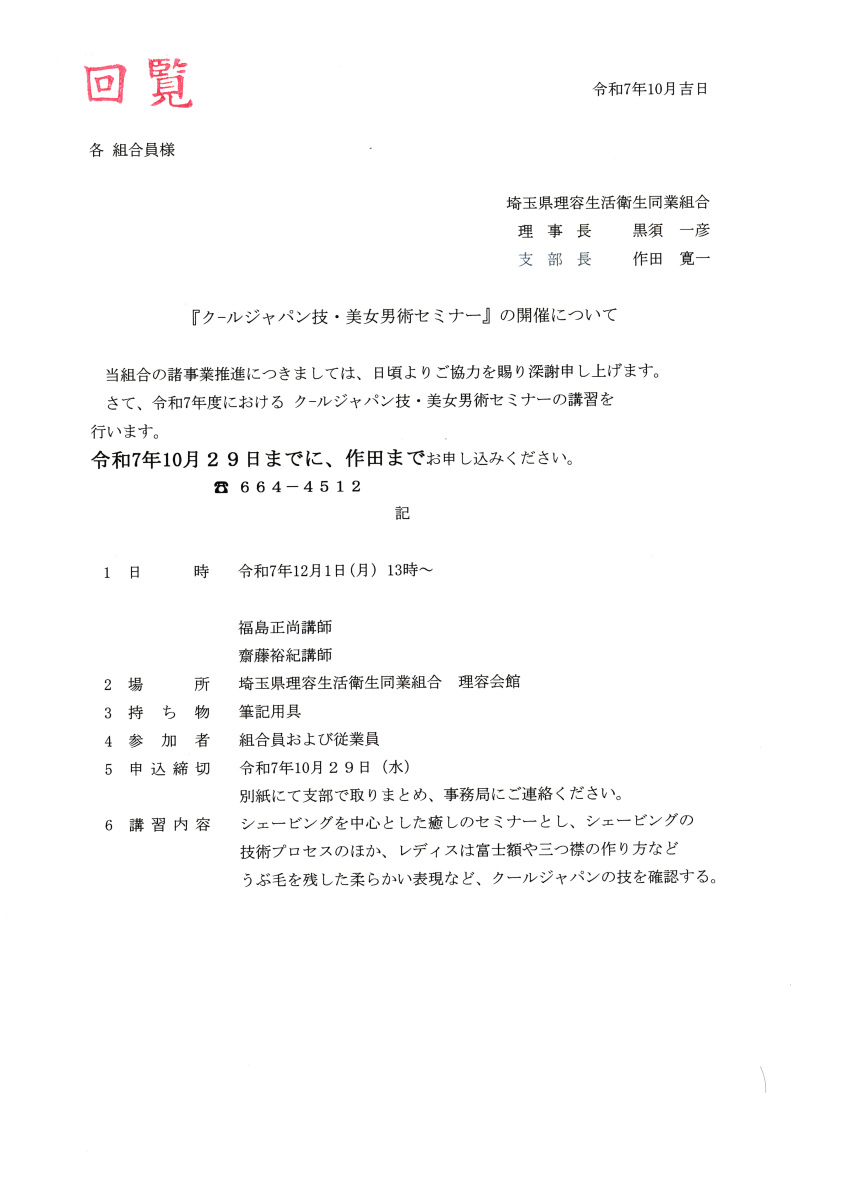 埼玉県理容生活衛生同業組合 さいたま支部 回覧一覧